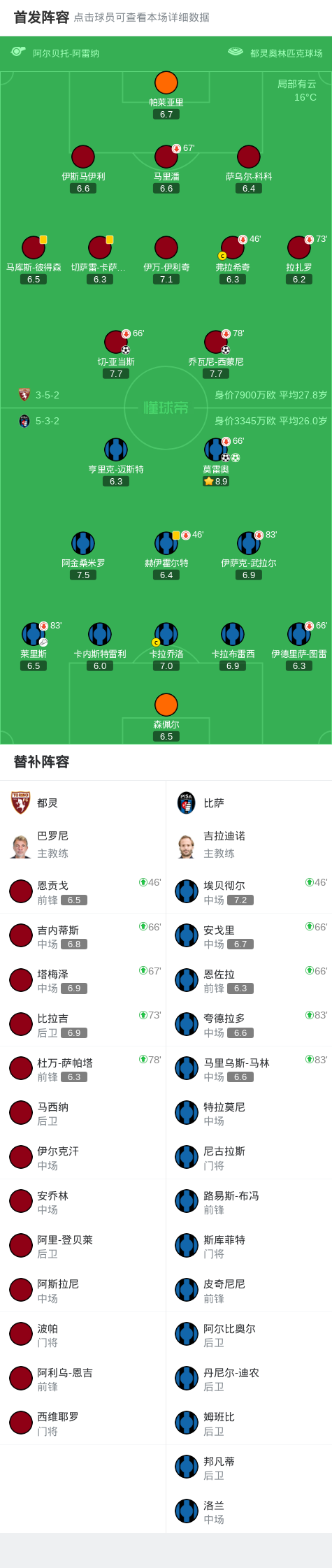 都灵2-2比萨,莫雷奥先拔头筹,切-亚当斯救主